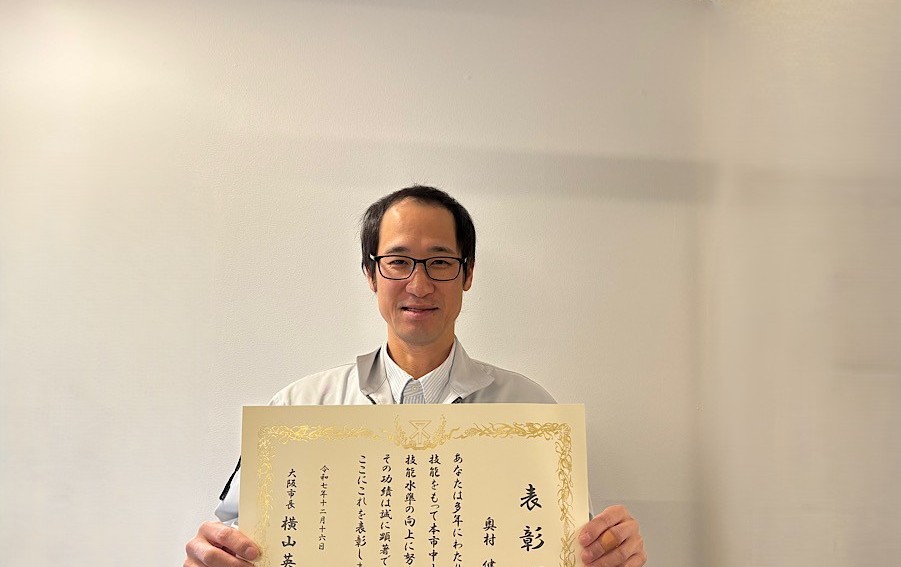 弊社社員が「大阪市中小企業技能功労者表彰」を受賞しました